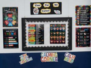 In our Clubs’ ongoing efforts to incorporate the training our staff recieves in mental health wellness and trauma-informed care, staff at our Railroad Clubhouse have created a great, new “Calm Corner.” Understanding that sometimes we all need to take a break and check in with ourselves, this corner offers a place of quiet and respite where Club members can take a moment to reflect on their feelings, get their emotions under control and re-balance themselves.