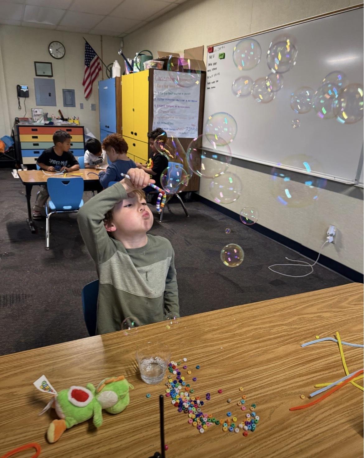 Meanwhile, our kindergarten students had a blast designing their very own bubble wands and creating a homemade bubble solution. Laughter and learning filled the room as students experimented, tested their designs, and discovered the science behind bubbles!