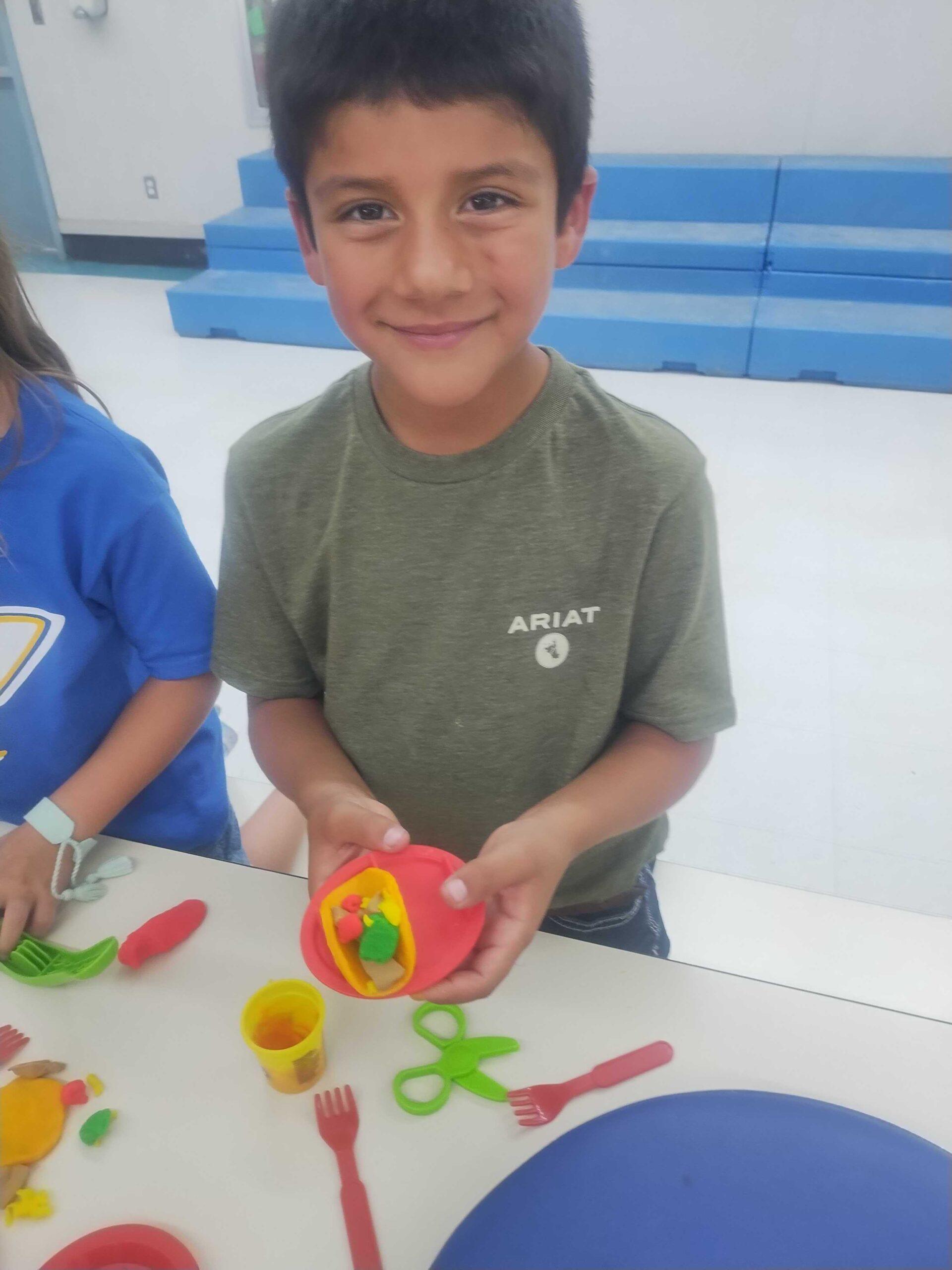 The kids got to do construction paper art, with whatever nature or animals that they wanted. Another fun activity was painting with the foam brushes. Members got to experiment with different colors and shapes that the fun brushes could create.In the sunshine, Members got to play kickball, dodgeball, flag football and other outdoor games. For indoor activities, playdough was neat and we got lots of interesting rollers and shapes for them to use. Members cooked their own culinary creations and got to serve them with tableside service at their own restaurant.